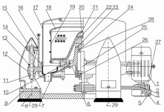 14. 外殼密封圈 15. 柱腳罩 16. 制動手柄 17. 外殼 18. 攔液板 19. 轉(zhuǎn)鼓筒體