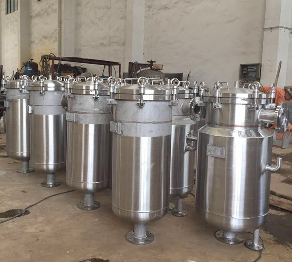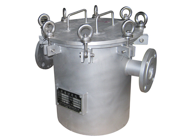 XY-G型籃式過濾機(jī)主要有:過濾缸筒體、過濾缸蓋、不銹鋼燒結(jié)濾籃等主要部件組成。該種過濾機(jī)是一種壓力過濾裝置,液體由過濾機(jī)外殼的旁側(cè)入口管流入濾籃,濾籃本身強(qiáng)度大,液體滲透過所需要細(xì)度等級的濾籃即能獲得合格的濾液,雜質(zhì)顆粒被濾籃捕捉。該機(jī)更換濾籃十分方便,過濾基本無物料消耗。濾籃不必更新,可反復(fù)長期使用。