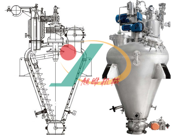 無錫旭曄機(jī)械開發(fā)的真空單錐干燥機(jī)是一種集減壓蒸餾、粉碎、混粉、干燥為一體的高效多功能全密閉立式真空干燥設(shè)備,全密閉立式真空螺帶干燥機(jī)的干燥效率是同等規(guī)格雙錐回轉(zhuǎn)真空干燥機(jī)、真空箱式烘3~5倍。真空單錐干燥機(jī)結(jié)合特殊干燥工藝,能適應(yīng)粘度大、熱穿透性差,易滾球、易抱團(tuán)成塊的物料的干燥。