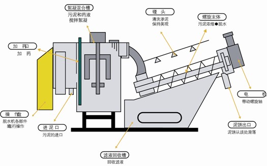 ● 脫水機(jī)主體具有自我清洗功能,故不必為防止污泥堵塞而大量用水清洗。