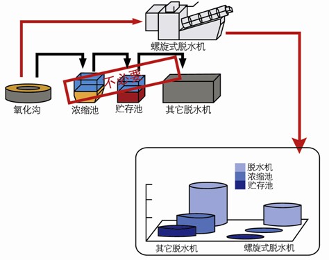 本身設(shè)計(jì)小型節(jié)省占地空間和建設(shè)成本,無須建設(shè)濃縮池,貯存池減輕污泥儲存時(shí)發(fā)生的磷釋放和厭氧臭味。