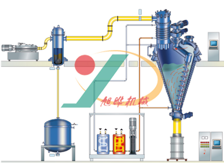 無錫旭曄機(jī)械開發(fā)的真空單錐干燥機(jī)是一種集減壓蒸餾、粉碎、混粉、干燥為一體的高效多功能全密閉立式真空干燥設(shè)備,全密閉立式真空螺帶干燥機(jī)的干燥效率是同等規(guī)格雙錐回轉(zhuǎn)真空干燥機(jī)、真空箱式烘3~5倍。真空單錐干燥機(jī)結(jié)合特殊干燥工藝,能適應(yīng)粘度大、熱穿透性差,易滾球、易抱團(tuán)成塊的物料的干燥。